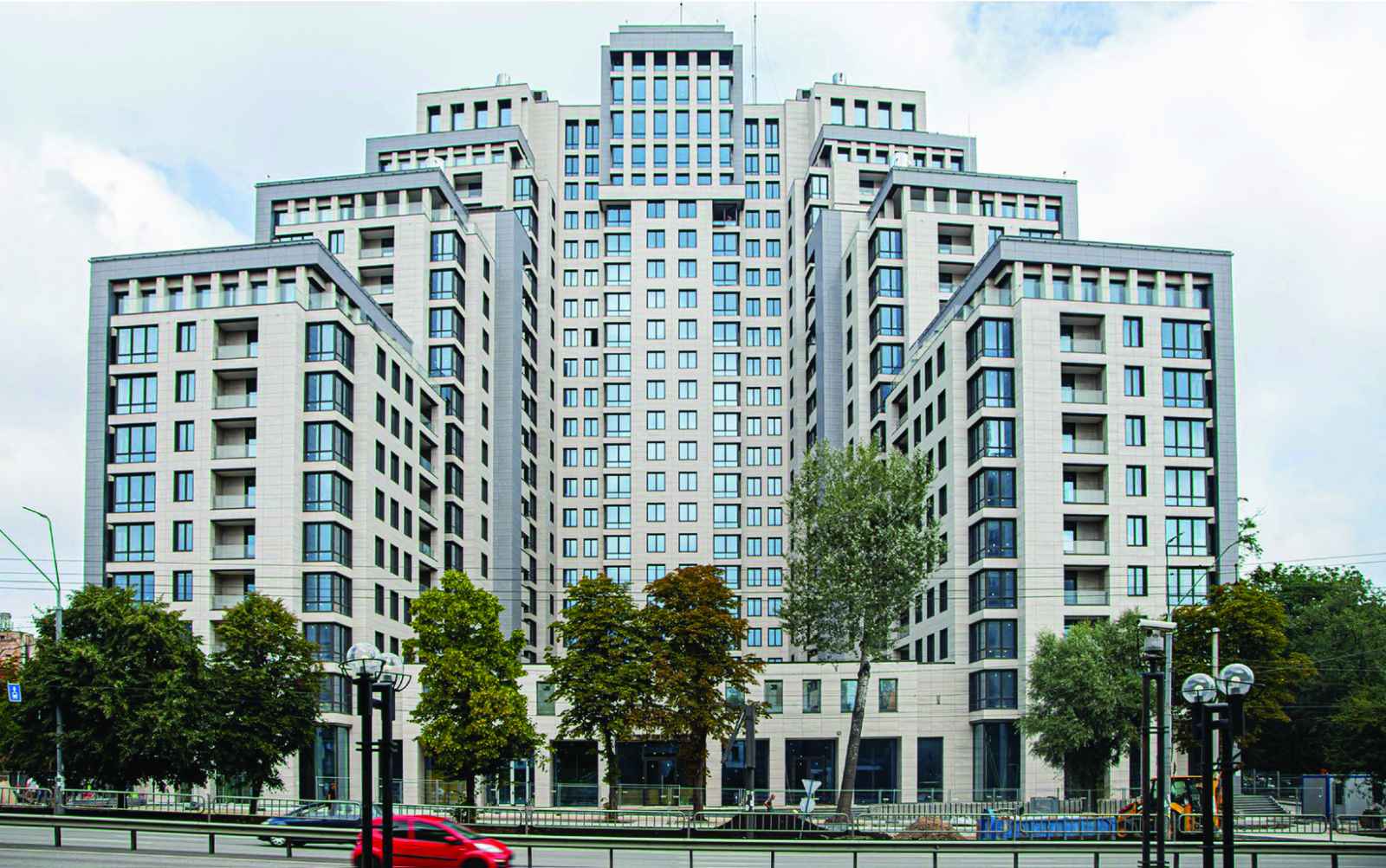 ФАСАД:керамограніт 1200х600 виготовлений на базі EPICENTR CERAMIC CORPORATION (Київ), навісні вентильовані фасади з утепленням базальтовими мінераловатними плитами