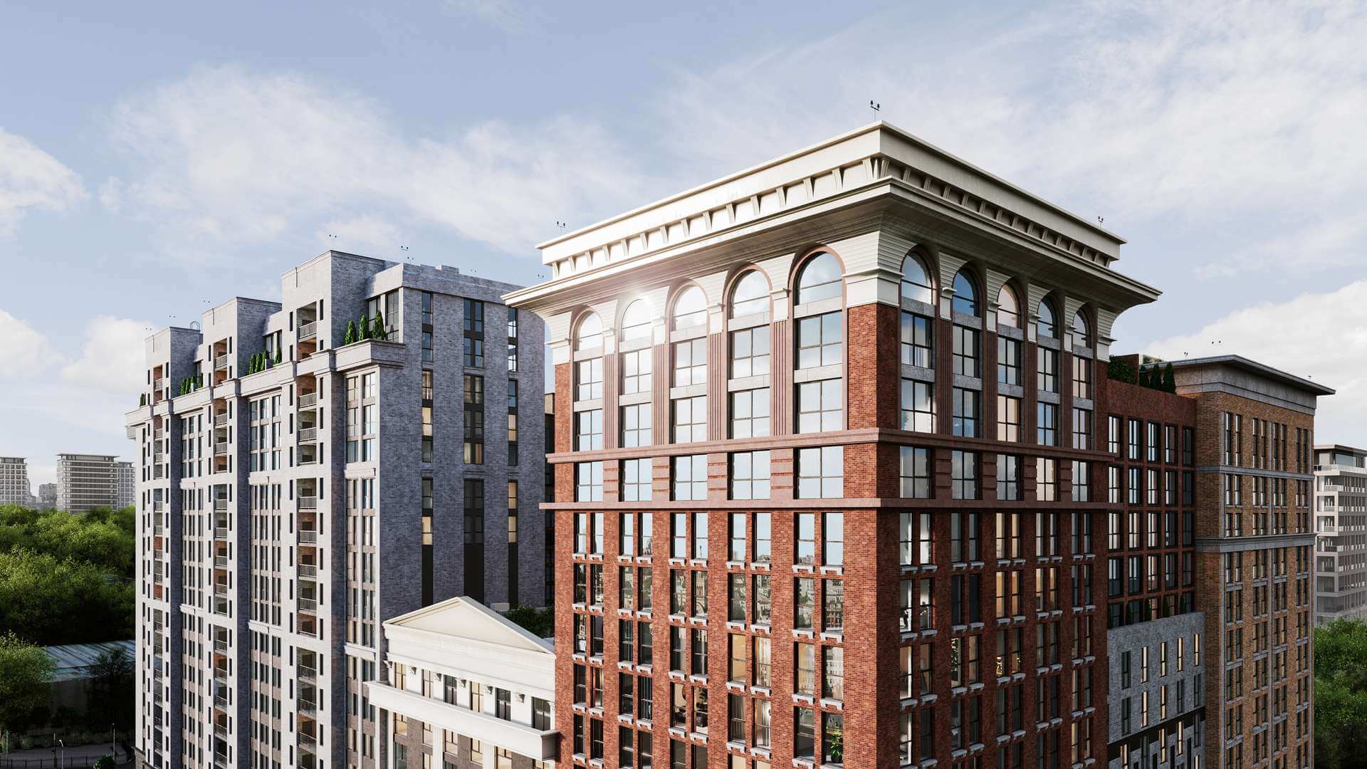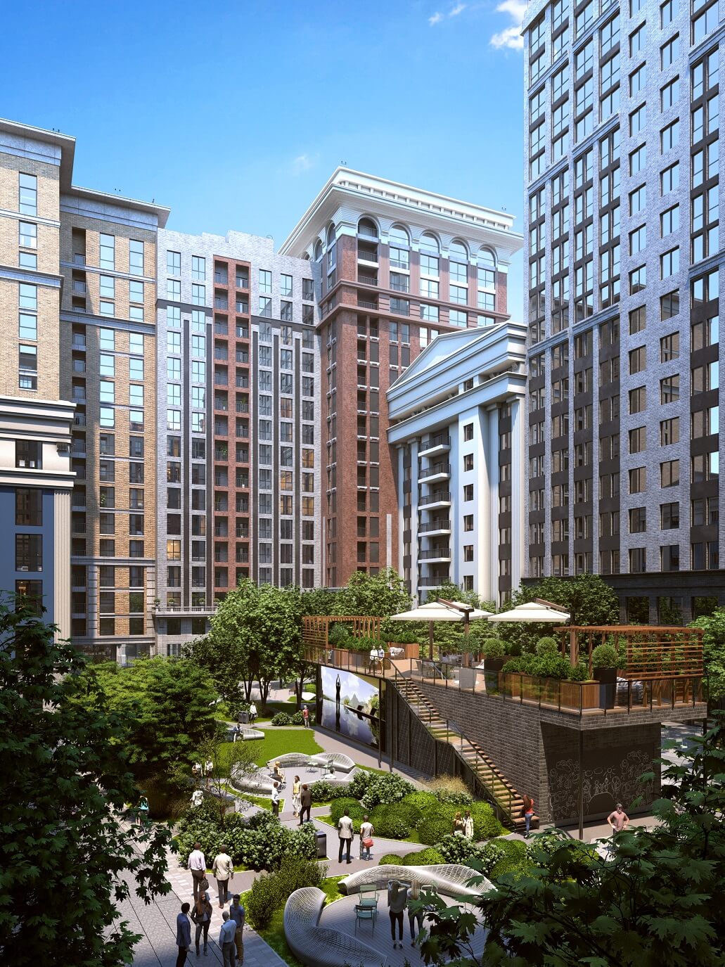 Архітекторів надихнули образи інтелектуальної Америки - квінтесенція свободи і розвитку, стриманості і елегантності. Це відображення особливого способу життя за зразком світових проектів, що поєднують функціональність з естетикою класицизму.