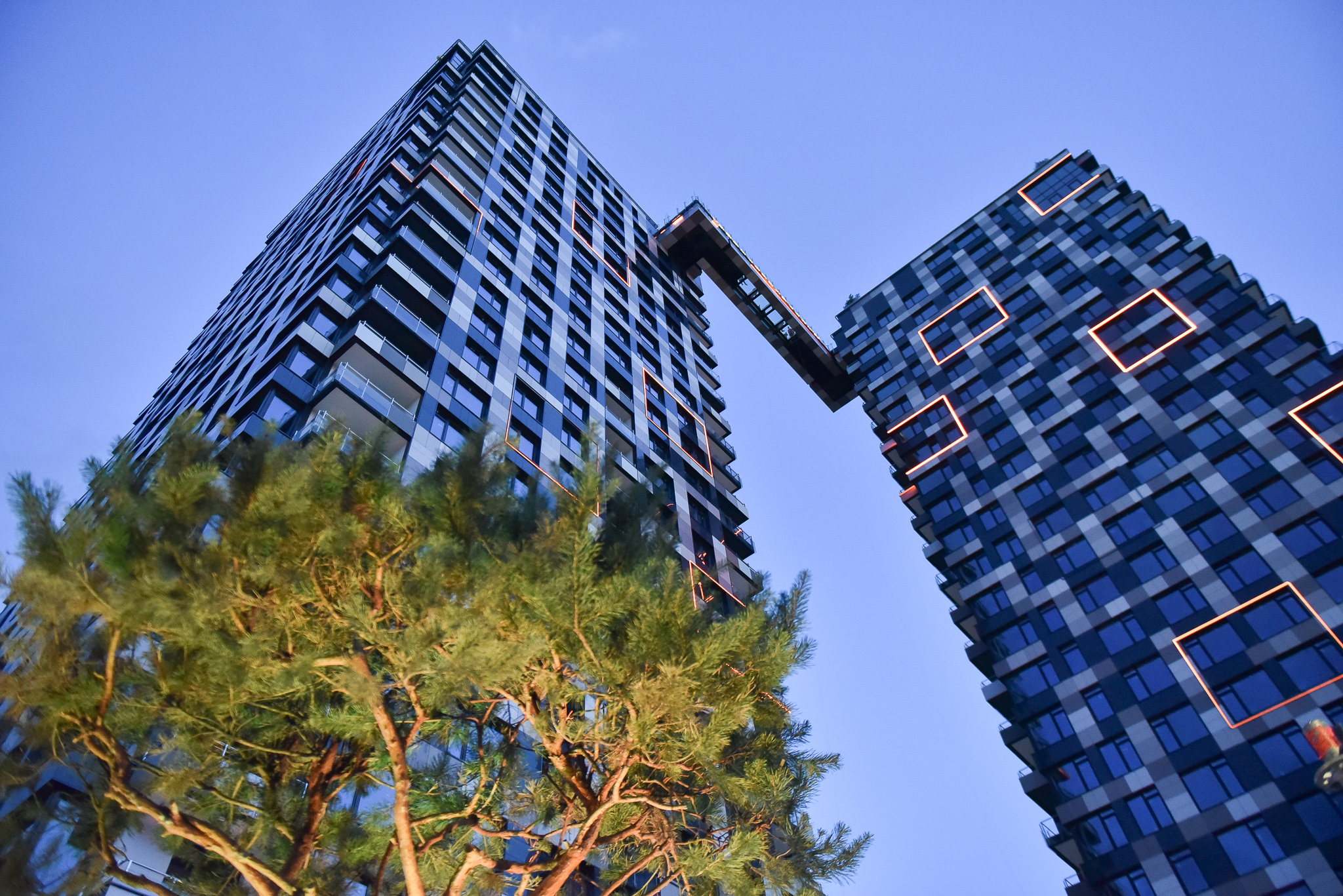 - Житловий комплекс «Тетріс Холл» у Печерському районі – один із найяскравіших комплексів української столиці, що знаходиться в самому центрі Києва на вулиці Ділова, 5.